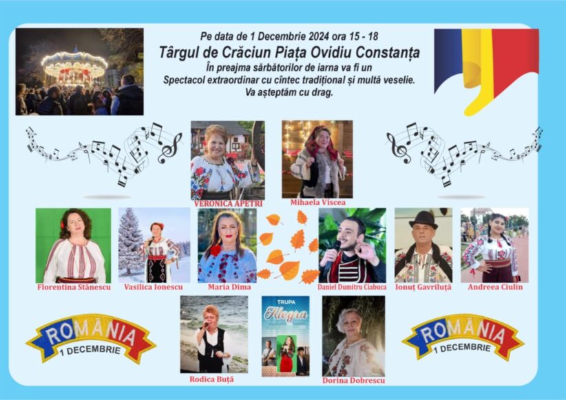 De Ziua Națională a României, Târgul de Crăciun din Piața Ovidiu, Constanța, devine centrul distracției și al sărbătorii. Atmosfera festivă va fi animată de DJ Vali Bărbulescu, care va oferi un spectacol muzical special pentru cei prezenți.