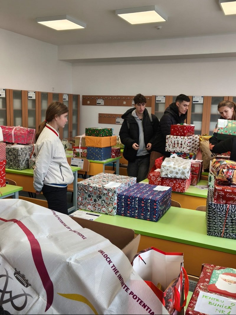 Elevii din clasele 5B, 6B, 7A, 7B, 8B, 9E și 11B, coordonați de profesorii Bărbuleț Alina, Dumitru Iuliana și Orzan Constantin, au pregătit și dăruit cadouri frumos împachetate, formând ceea ce au numit „Caravana cadourilor”. Aceștia s-au oprit la Liceul Tehnologic Crucea și la trei grădinițe din localitate – GPN Gălbiori, GPN Crucea și GPN Crișan –, unde au lăsat saci plini de jucării și daruri pentru cei mici.