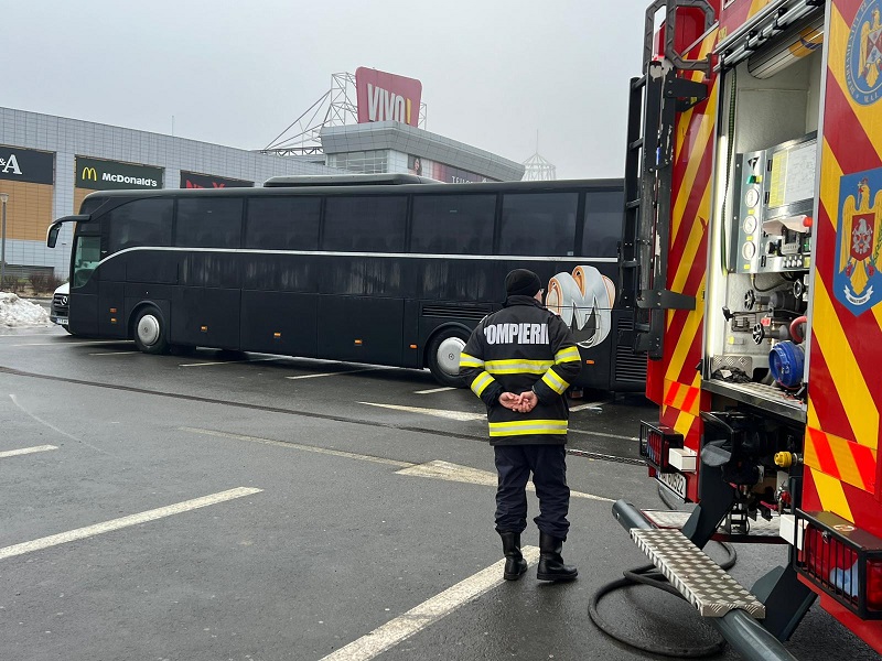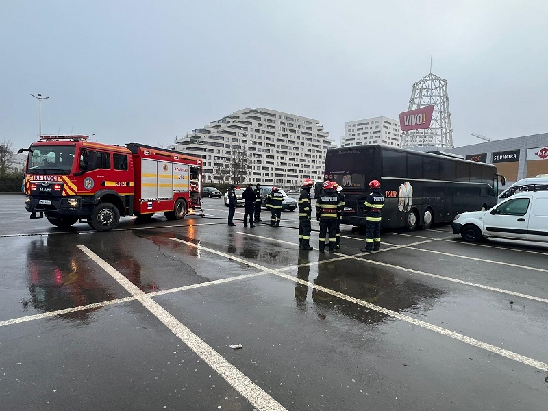 Momente de panică, duminică dimineața, în parcarea centrului comercial Vivo Mall Constanța, situat pe bulevardul Aurel Vlaicu, după ce un autocar a fost cuprins de flăcări.