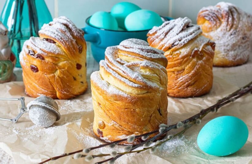 Acest cozonac de Paște este, practic, o combinație între un croissant și o brioșă. Aluatul este rulat în foi subțiri și pliat în spirală, ceea ce îi conferă un blat pufos și spectaculos.