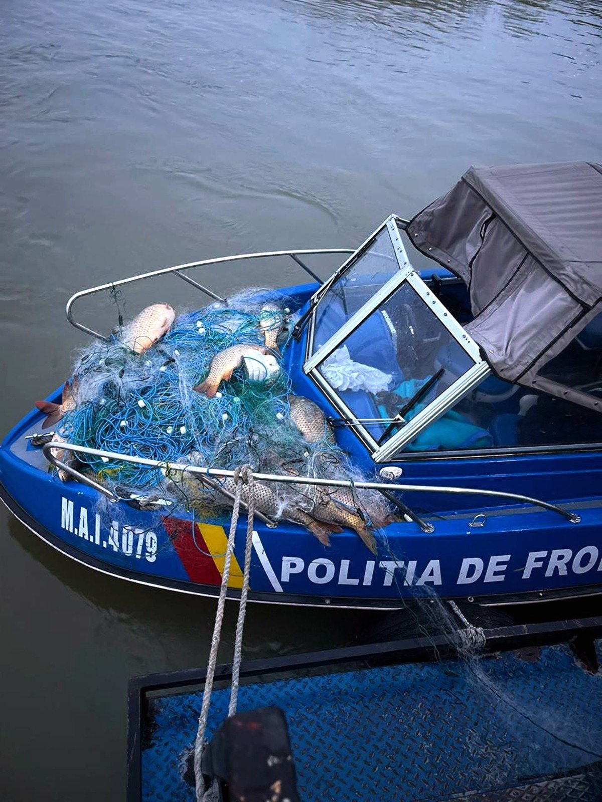 Totodată, în interiorul acesteia au fost identificate şi ridicate plase de pescuit în lungime totală de aproximativ 460 de metri”, au mai precizat poliţiştii de frontieră.